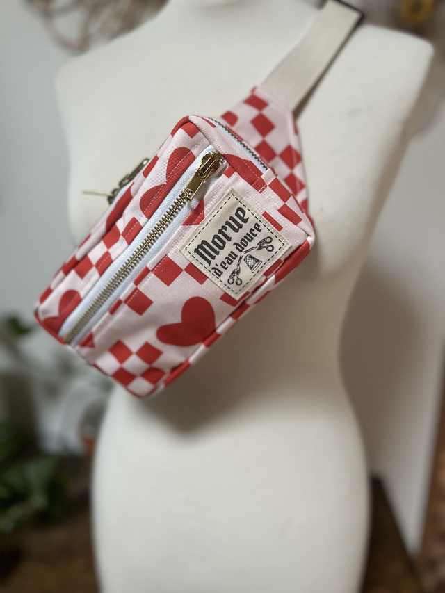 Pratique et léger, il est équipé d'une poche avant zip en laiton doré et d'une ouverture double zip. La sangle en coton réglable garantit un ajustement confortable. Dimensions : 20 cm x 11 cm x 5 cm. Lavable en machine à 30°.