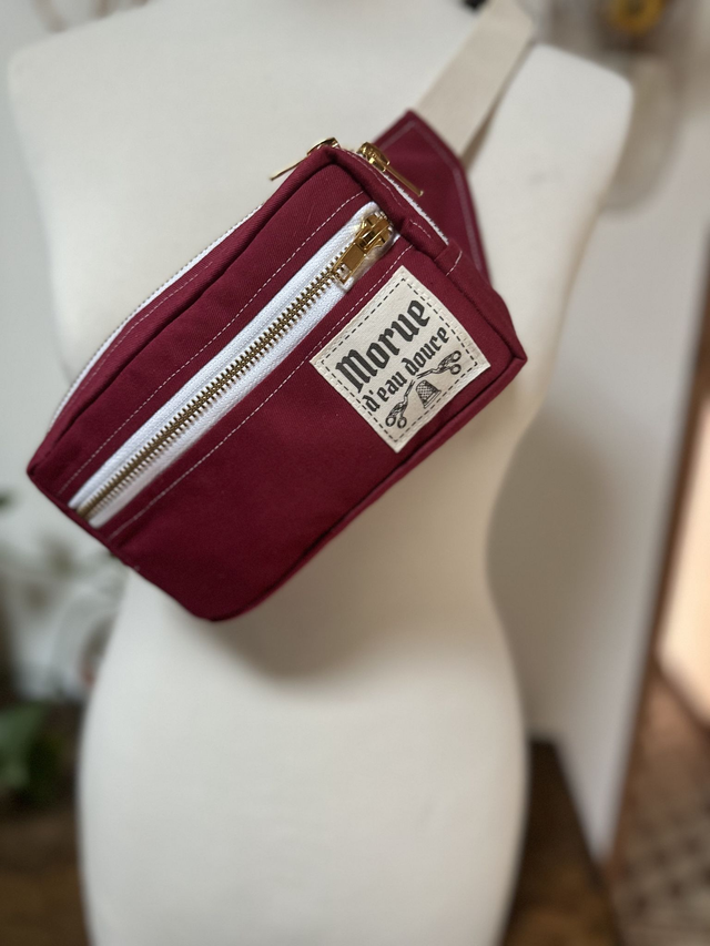 Pratique et léger, il est équipé d'une poche avant zip en laiton doré et d'une ouverture double zip. La sangle en coton réglable garantit un ajustement confortable. Dimensions : 20 cm x 11 cm x 5 cm. Lavable en machine à 30°.