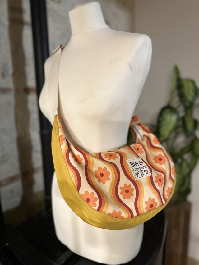 Sac banoulière le compromis parfait entre le sac bandoulière et le sac banane. Il dispose d'une sangle ajustable en coton et d'une fermeture zippée. Taille idéale pour un usage quotidien, pratique et élégant. Dimensions : L 40 cm x H 20 cm avec ouverture zip de 35 cm.